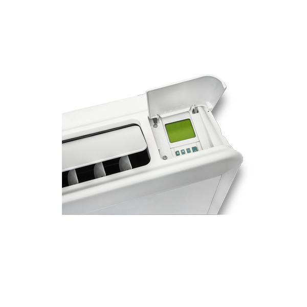 Ventilconvettori con mobile di design FLAT Li, motore a commutazione elettronica EC, installazione in vista a parete con mobile di copertura ad uscita aria verticale